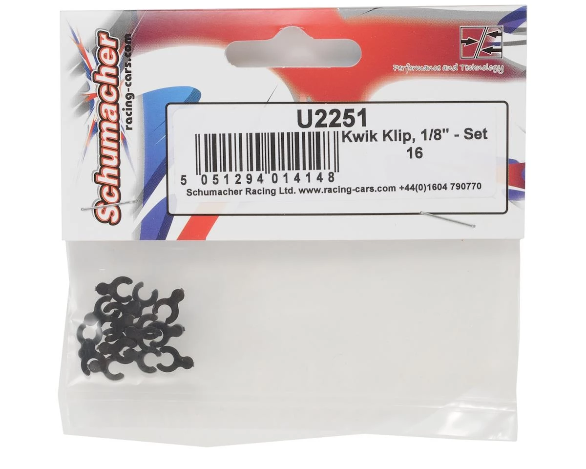This is a pack of sixteen Schumacher 1/8″ 1.0 & 2.0mm Kwik Klip Set.