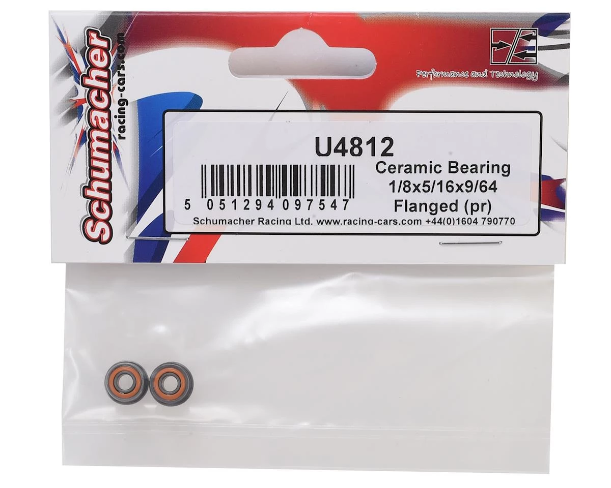 This is a pack of two optional Schumacher 1/8×5/16×9/64″ Flanged Ceramic Bearings. Ceramic bearings are known to have low drag and high roll characteristics.