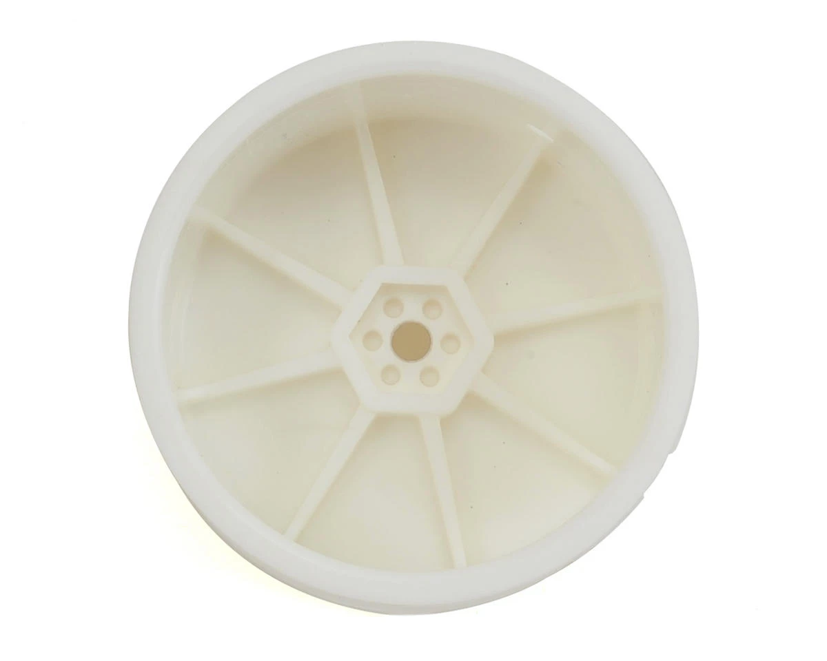 This is a pack of two Schumacher Rear Hex Wheels, in White color. These rear wheels are intended for use with 1/10 scale 2WD and 4WD buggies that use a 12mm hex.