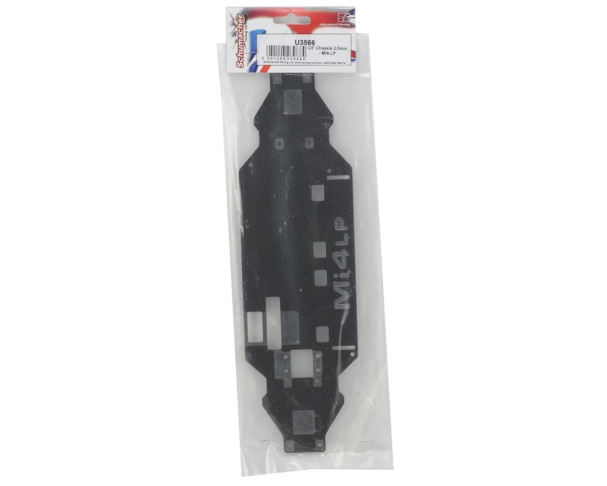 This is an optional Schumacher 2.5mm Carbon Fiber Mi4LP Chassis. This chassis is best on high grip surfaces such as carpet with rubber tires, or carpet with foam tires, as well as outdoors in hot or high grip asphalt conditions.