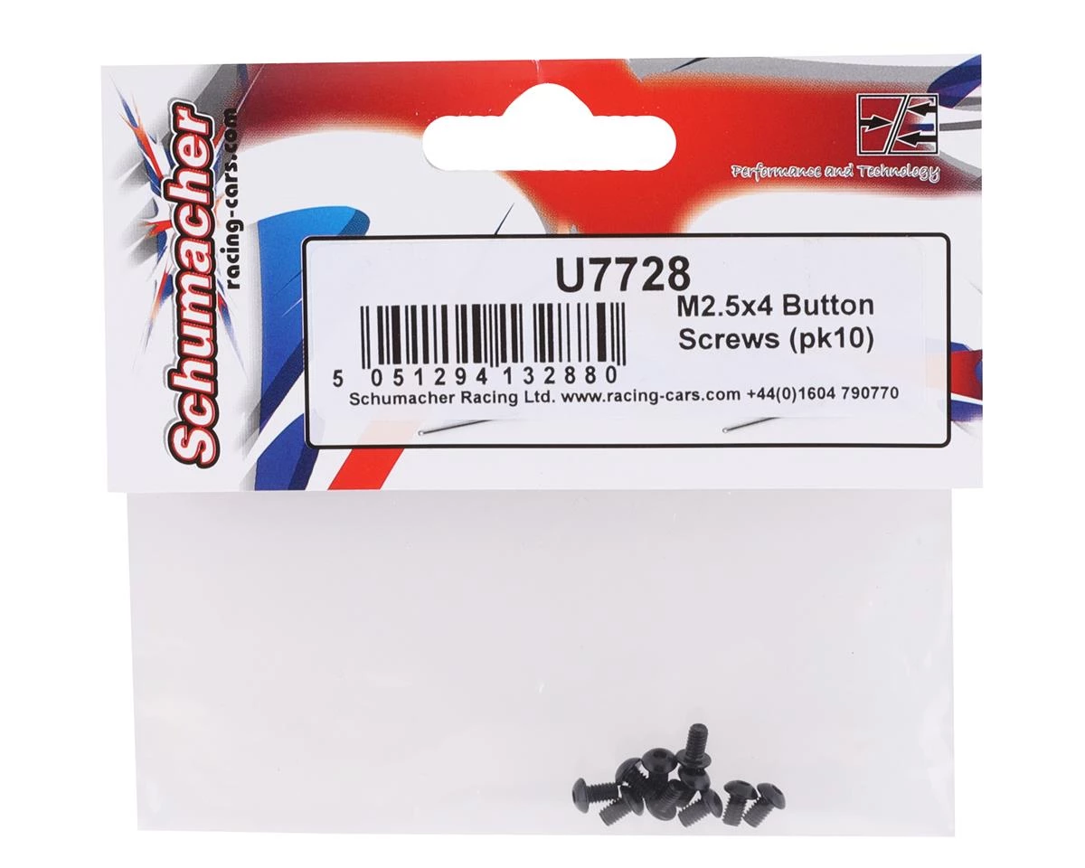 Schumacher 2.5x4mm Button Head Screws. Package includes ten button head screws.