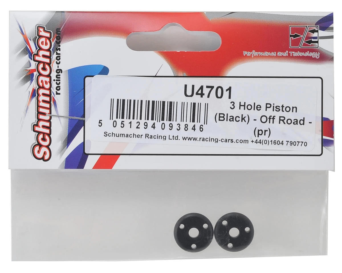 This is a pack of two replacement Schumacher Racing 3-Hole Rounded Pistons.
