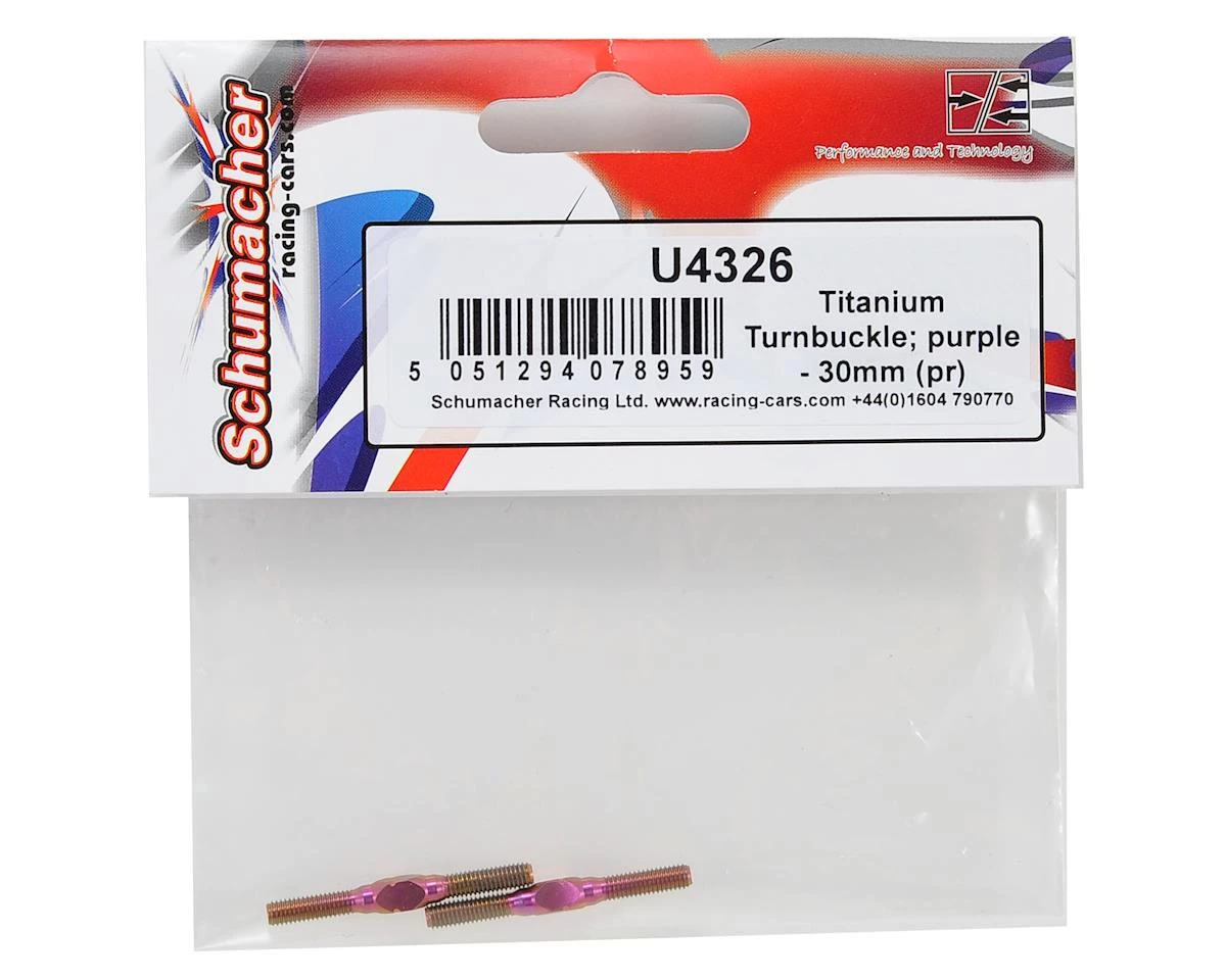 This is a pack of two optional Schumacher 30mm Purple Titanium Turnbuckles.