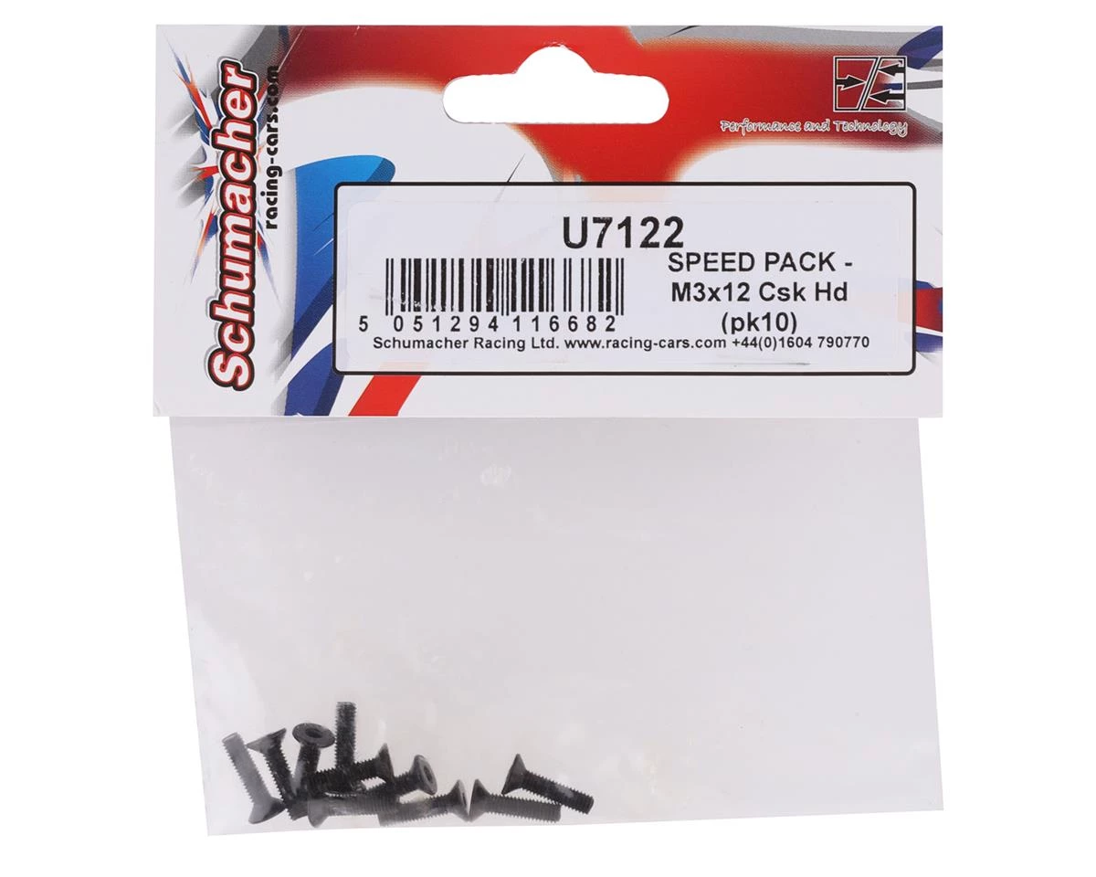 Schumacher 3x12mm Flat Head Screw Speed Pack. Package includes ten flat head screws.