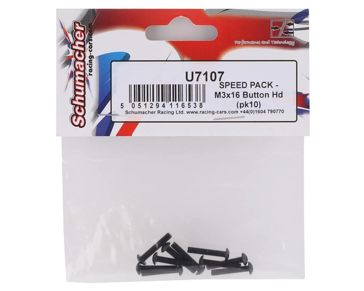 Schumacher 3x16mm Button Head Screw Speed Pack. Package includes ten button head screws.