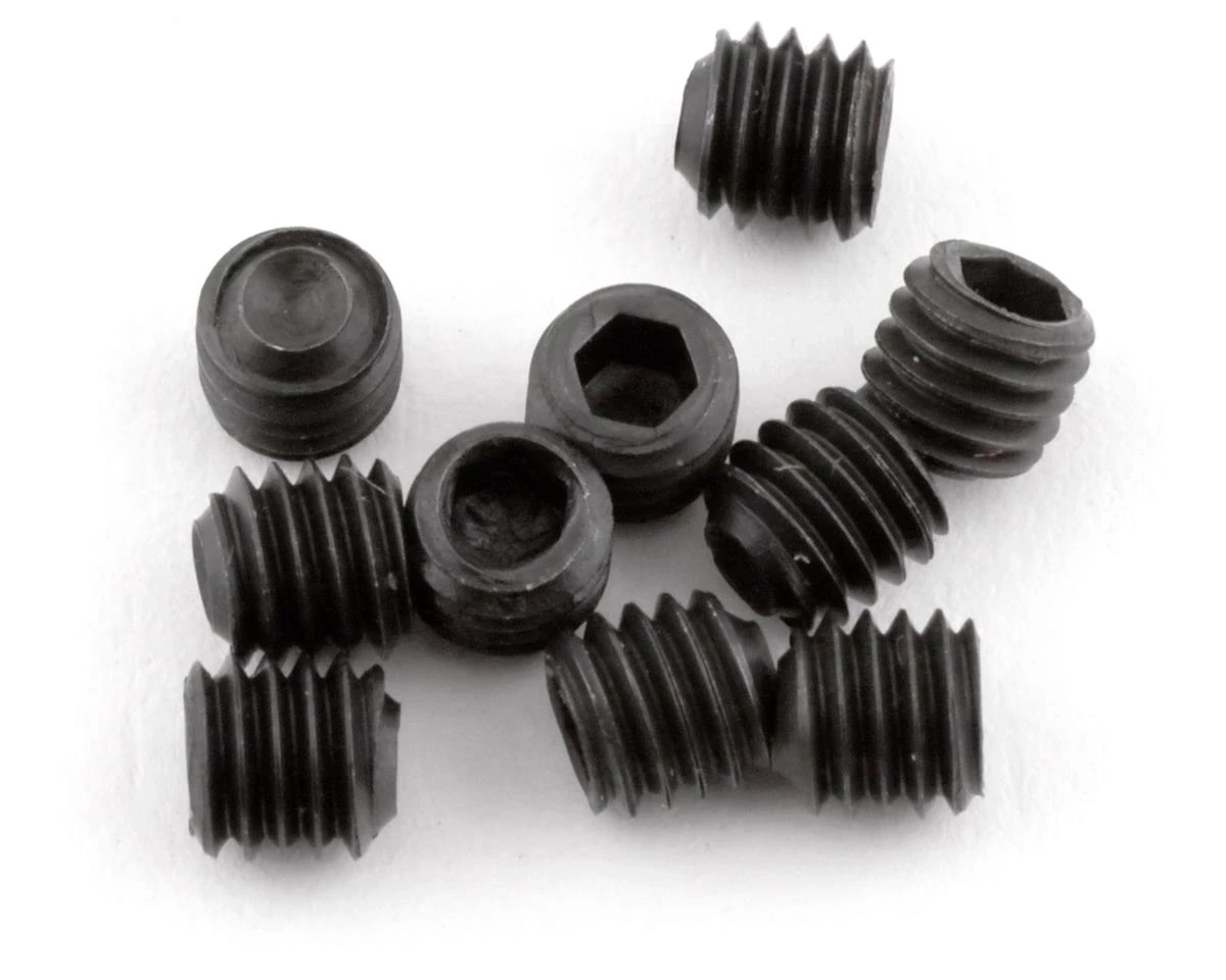 Schumacher 3x3mm Pinion Grub Screw Speed Pack. Package includes ten grub screws.