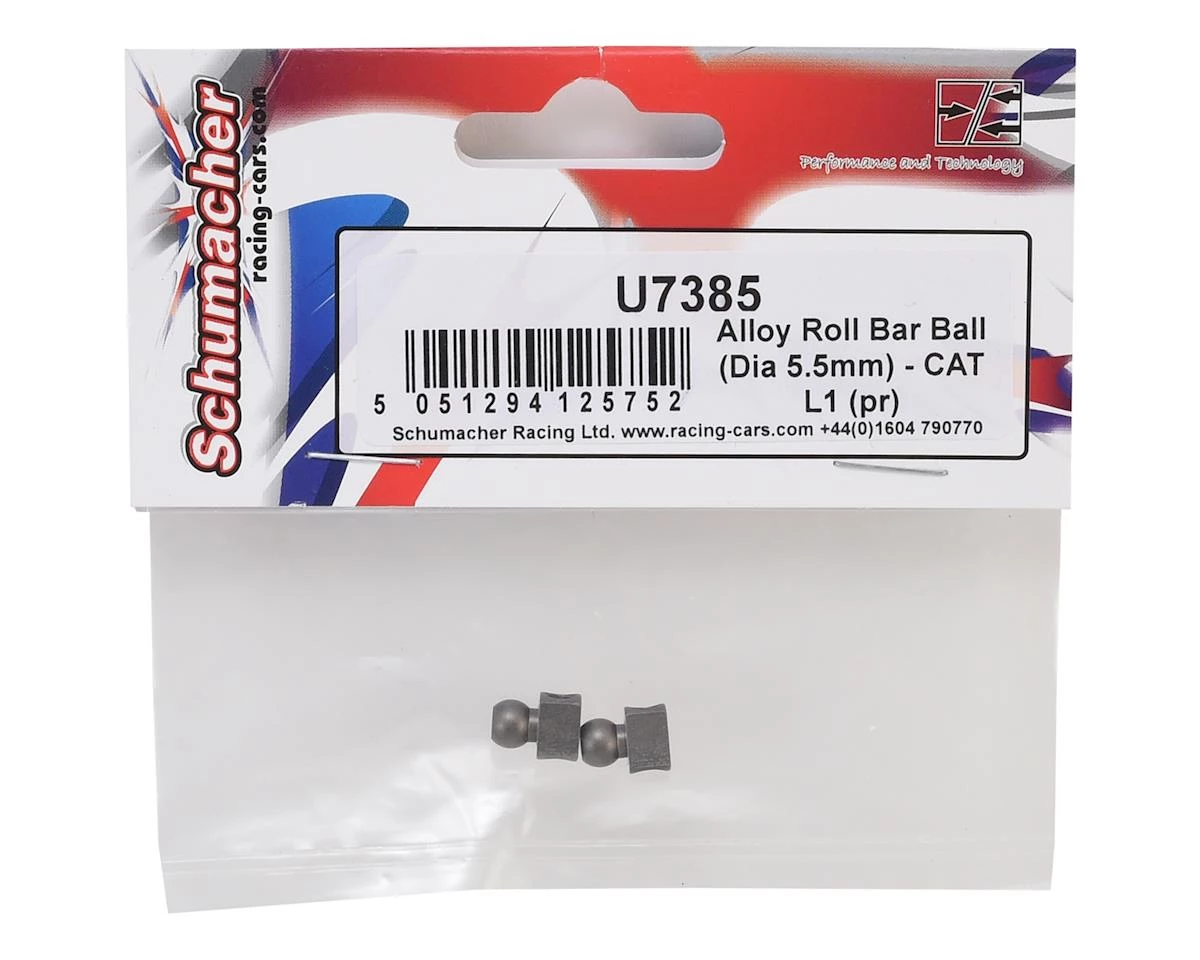 This is a pack of two replacement Schumacher 5.5mm CAT L1 Aluminum Alloy Roll Bar Balls. These balls feature a 5.5mm diameter.