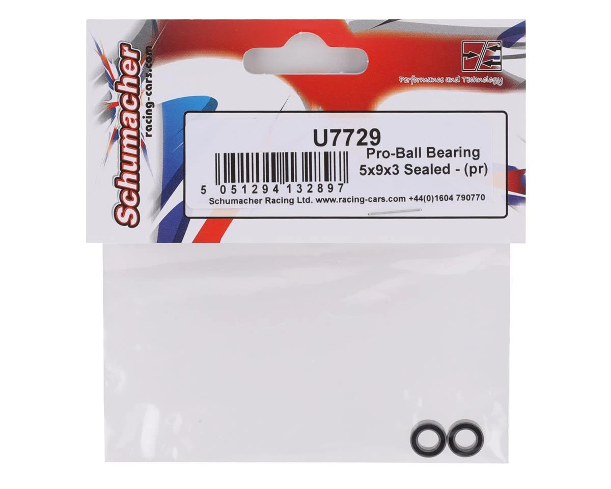 Schumacher 5x9x3mm Sealed Pro-Ball Bearing. These are optional bearings intended for the Schumacher Cougar LD2 and Storm ST. Package includes two ball bearings.