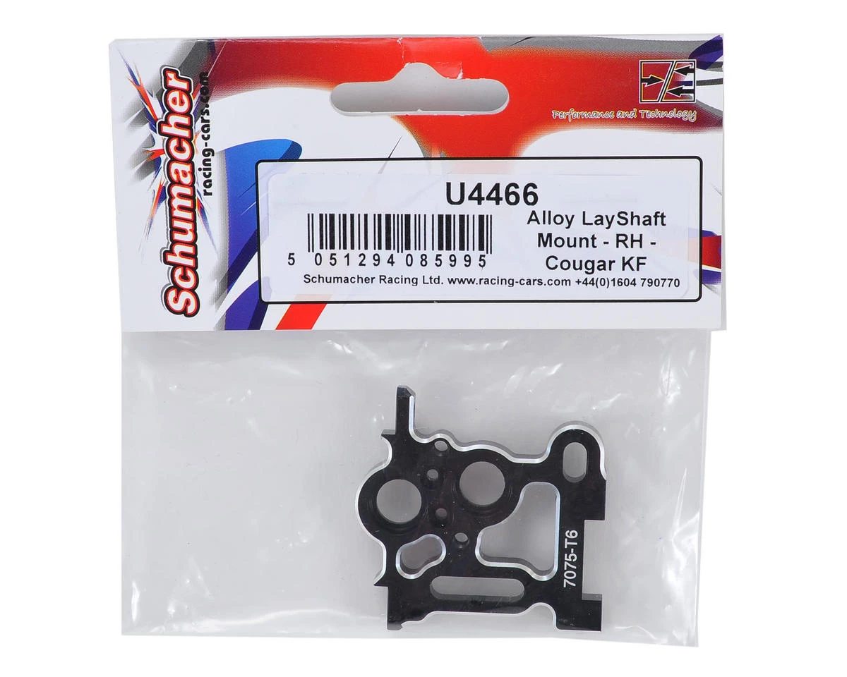 This is a replacement right side Schumacher Aluminum Layshaft Mount. This mount is made from 7075-T6 aluminum.