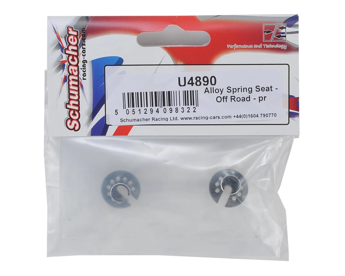 This is a pack of two optional Schumacher Aluminum Off-Road Shock Spring Cups for the Schumacher line of 1/10 scale off-road vehicles.