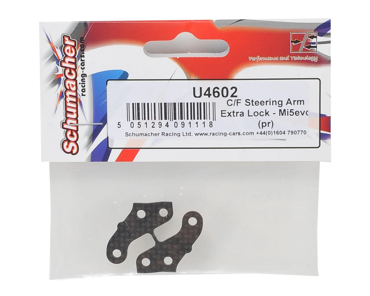 This is a pack of two replacement Schumacher Carbon Fiber Steering Arm Extra Locks.