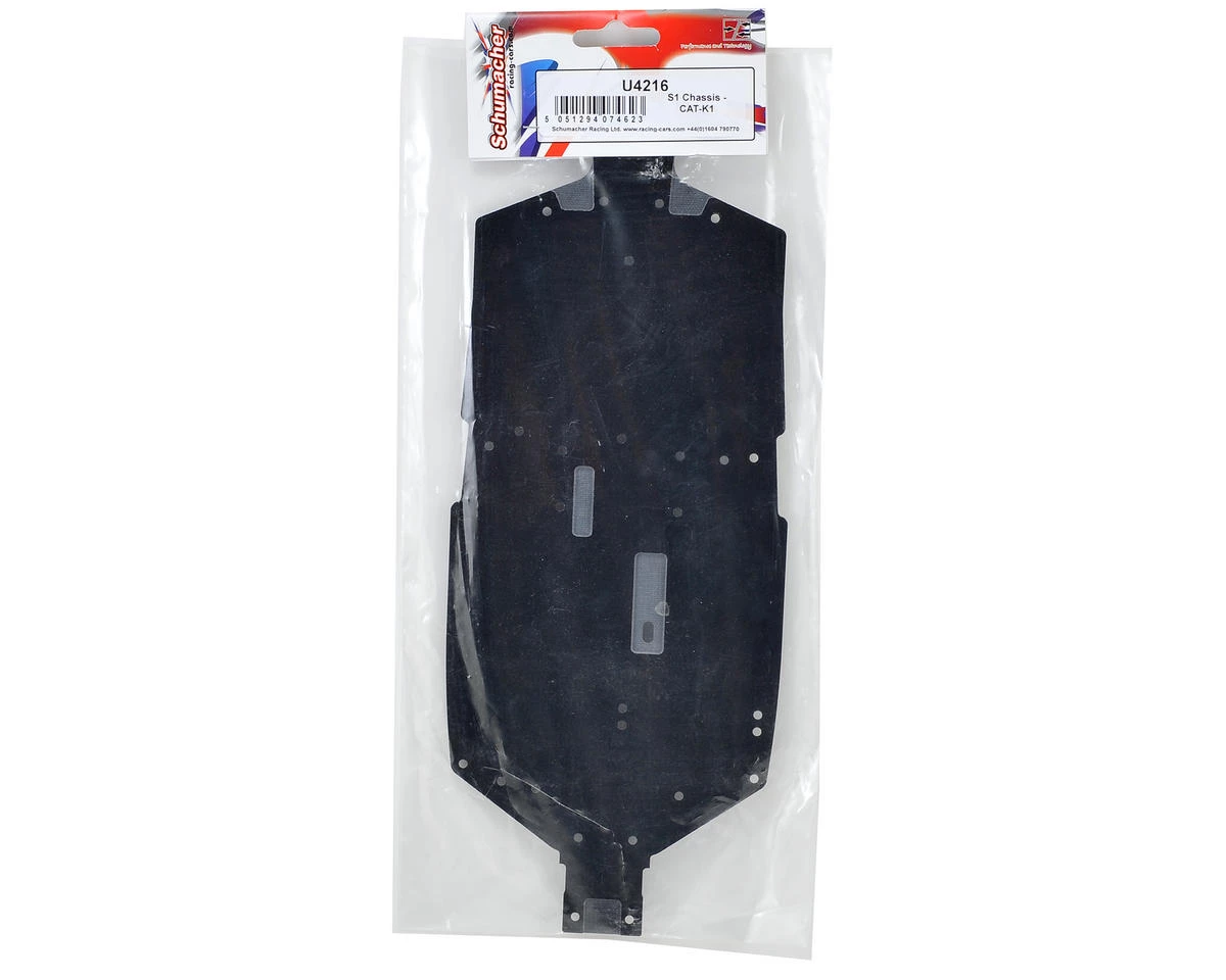 This is an optional Schumacher Cat K1 Aero S1 Chassis. This chassis delivers more flex than the standard chassis to provide more traction on low grip surfaces, and makes the car more forgiving.