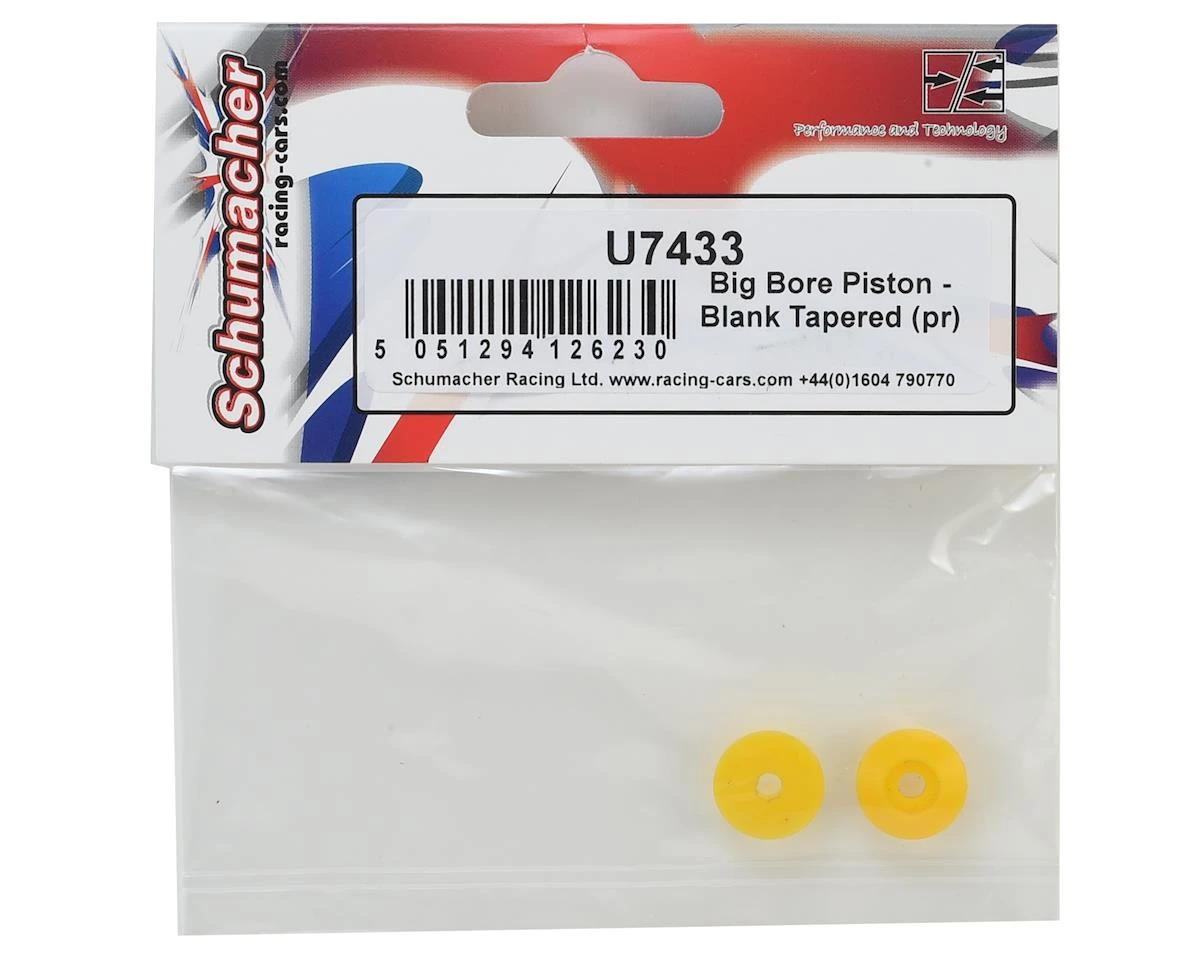 Schumacher CAT L1 Big Bore Tapered Shock Pistons are a great tuning option for your CAT. The pistons are left undrilled, allowing you to add the holes you want and tune to get the pack you need. The pistons have dimples on one side to simplify 2, 3 or 4 hole valve placement, and one side of the piston is tapered to provide faster compression or rebound based on the direction of the taper.