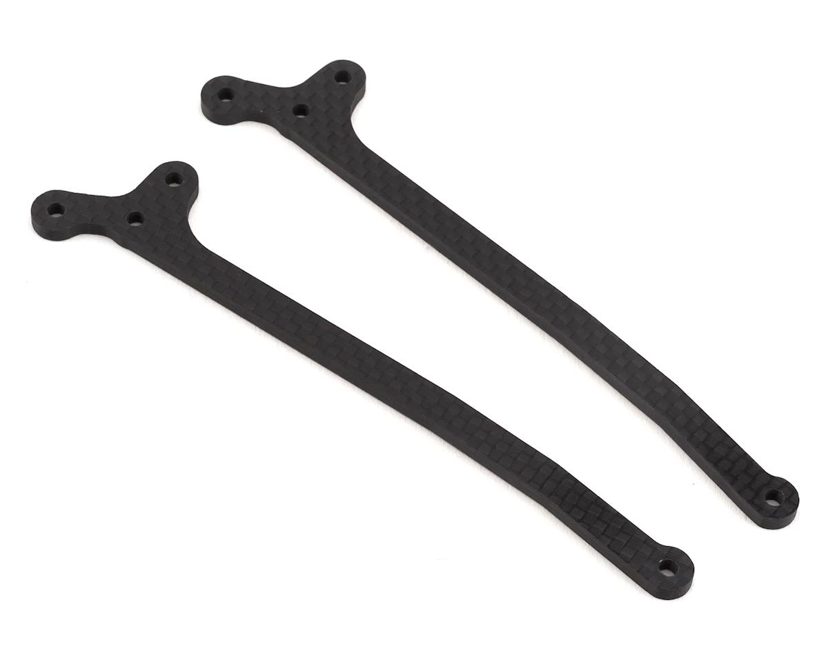 This is a Schumacher Carbon Fiber Heavy Duty 3.0mm Rear Top Deck. The package contains two optional carbon fiber heavy duty rear top decks compatible with the CAT L1 1/10 Buggy.
