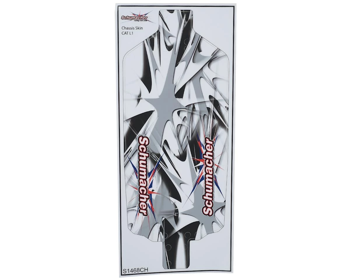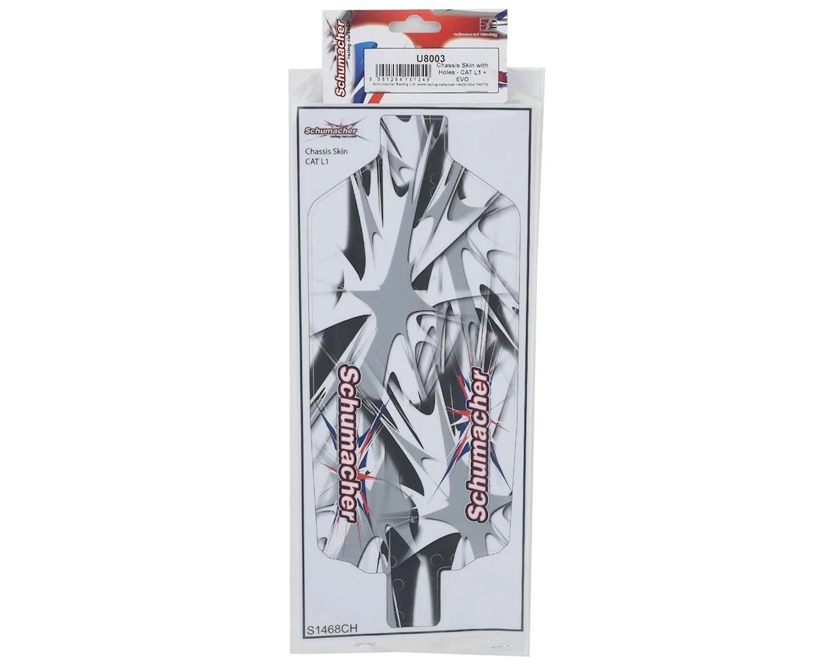 The Schumacher CAT L1 + EVO Chassis Skin Protector will increase the life of your chassis in those rough conditions. With a grey, white and black pattern it is sure to complement any paint design. This version has die cuts for the screw holes so you can gain easy access to the screws for maintenance. It is recommended to clean the chassis before application. Package includes one chassis skin.
