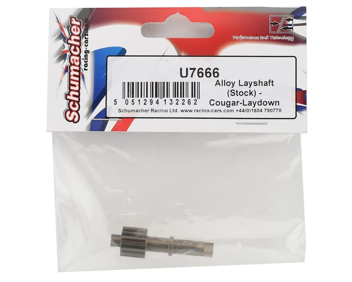 This is a Schumacher Aluminum Alloy Layshaft, a replacement layshaft intended for use with the Cougar Laydown 2WD 1/10th Off-Road Competition Buggy Kit. This package contains one alloy layshaft.