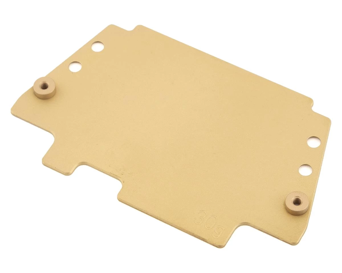 This is an optional Schumacher 30g Brass Radio Plate. The package contains one optional brass radio plate compatible with the Cougar Laydown 1/10 Buggy.