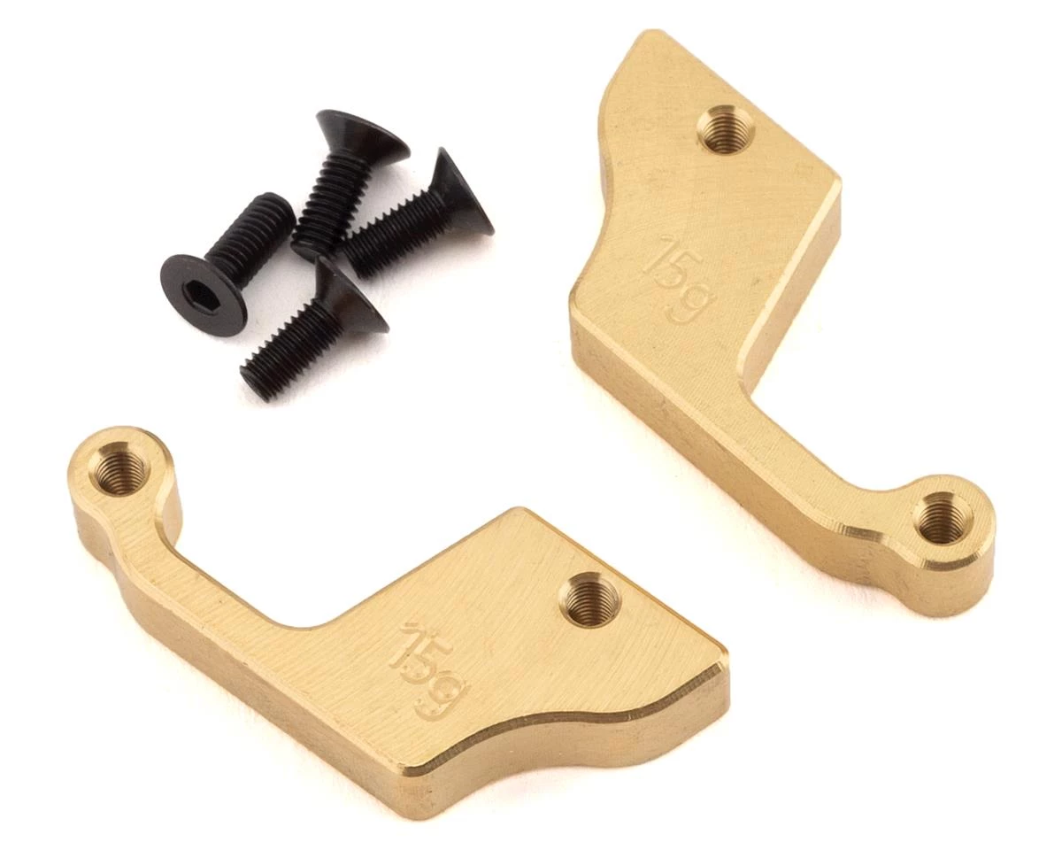 This is an optional Schumacher 15g Brass Rear Weight Set. The package contains two optional brass rear weights compatible with the Cougar Laydown 1/10 Buggy.