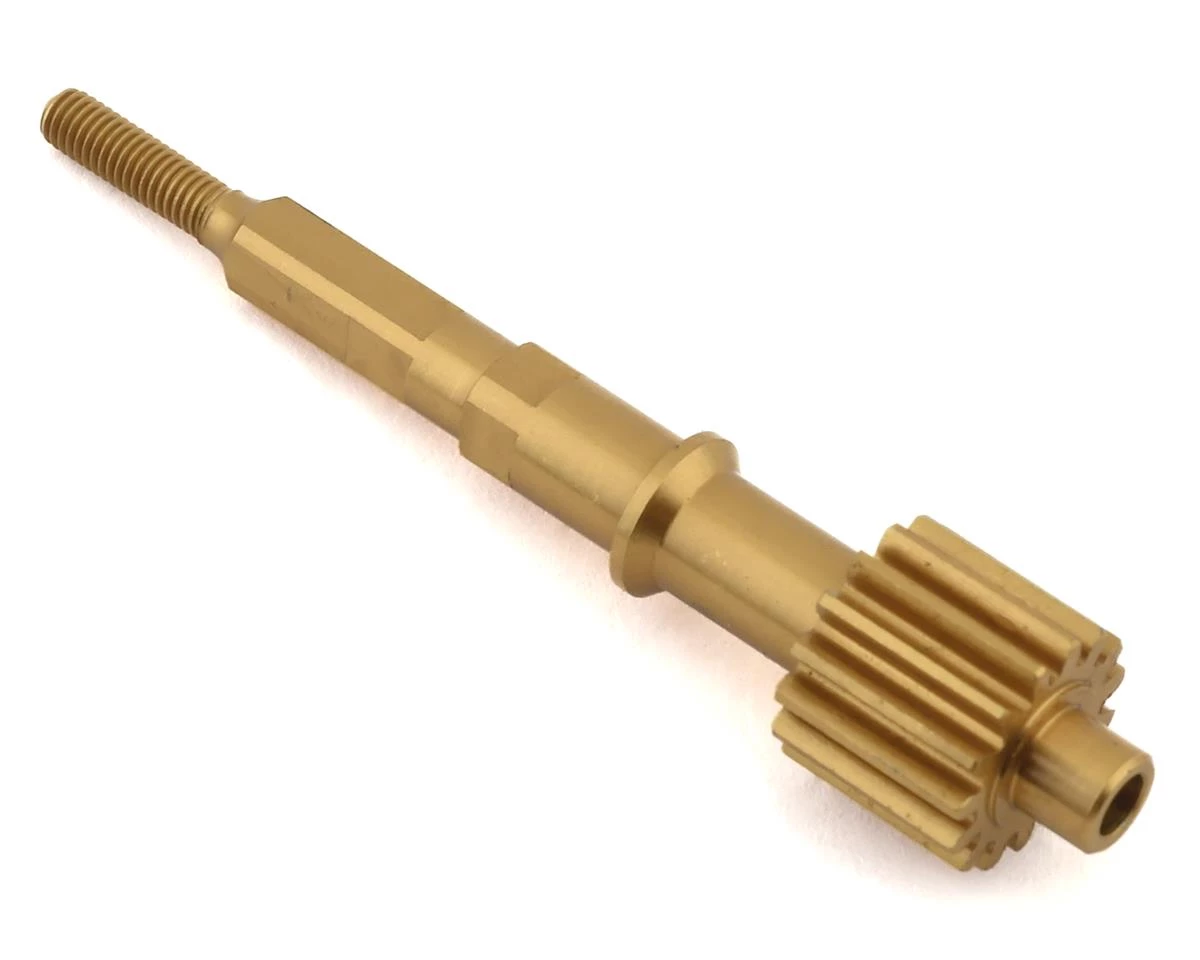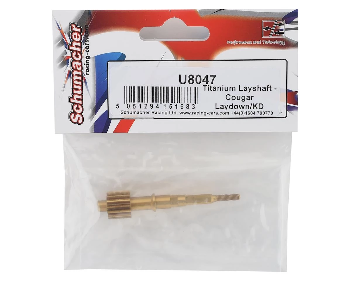 The Schumacher Cougar Laydown/KD Titanium Layshaft is a lightweight Titanium option for the Cougar Laydown and KD models. The stock part weighs 13 grams, while this titanium upgrade weighs just 7.5 grams and provides a significant weight saving of 5.5 grams. This offers not only a weight savings, but more importantly the rotating mass is significantly reduced, meaning faster spool up time and acceleration.