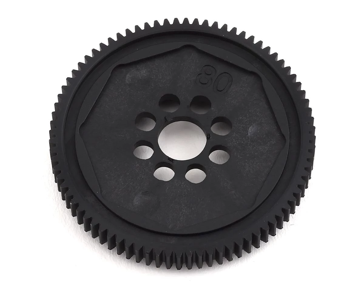 The Schumacher Cougar Laydown Plate Slipper Spur Gear package includes one slipper spur gear, compatible with 2, 3 and 4 plate slippers. Choose from 78 or 80 tooth options.