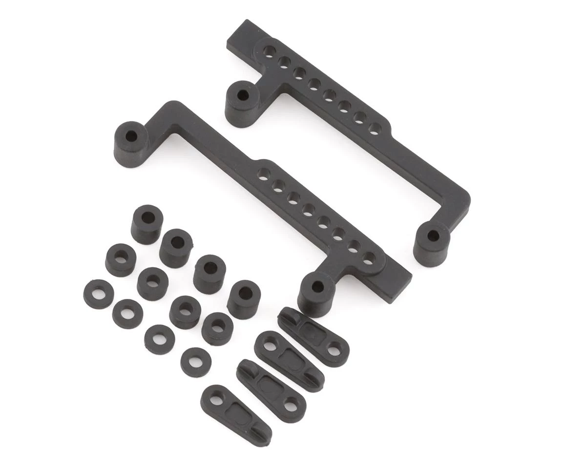 Schumacher Cougar LD2 LiPo Hold-Down Components. This replacement LiPo hold-down is intended for the Cougar LD2. Package includes left and right LiPo hold-down components.
