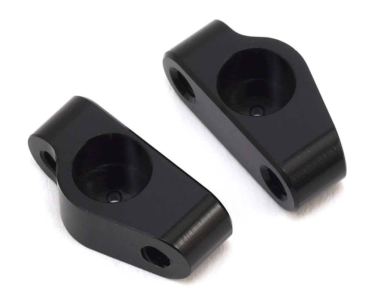 This is an optional Schumacher KF2 Alloy Pivot Block Set. For the Cougar KF2, these optional rear toe in blocks can be used to give you the option of using 4 degrees or 1.5 degrees rear toe in compared to the kit 2.5 or 3 deg. These will mainly be used in more extreme low grip or high grip conditions.