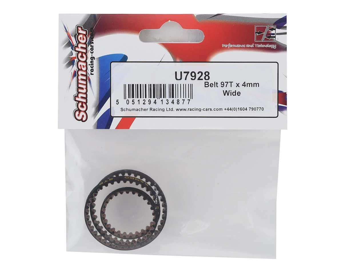 This is a replacement Schumacher 97T x 4mm Wide Mid Configuration Rear Belt, intended for use with the Mi7 Pro 1/10 Carbon Fiber Electric On-Road Touring Car Kit.