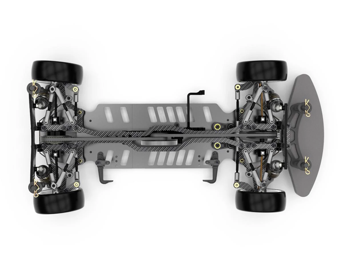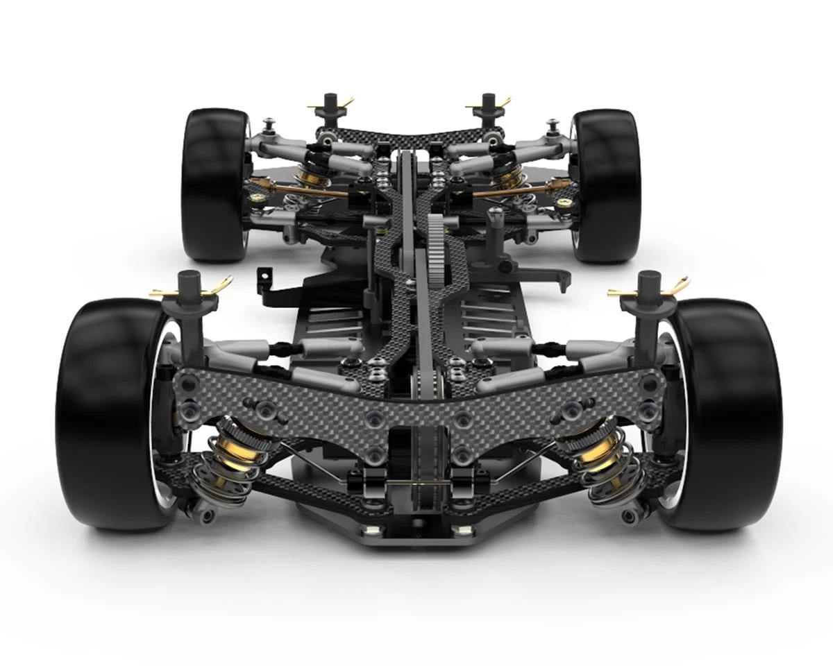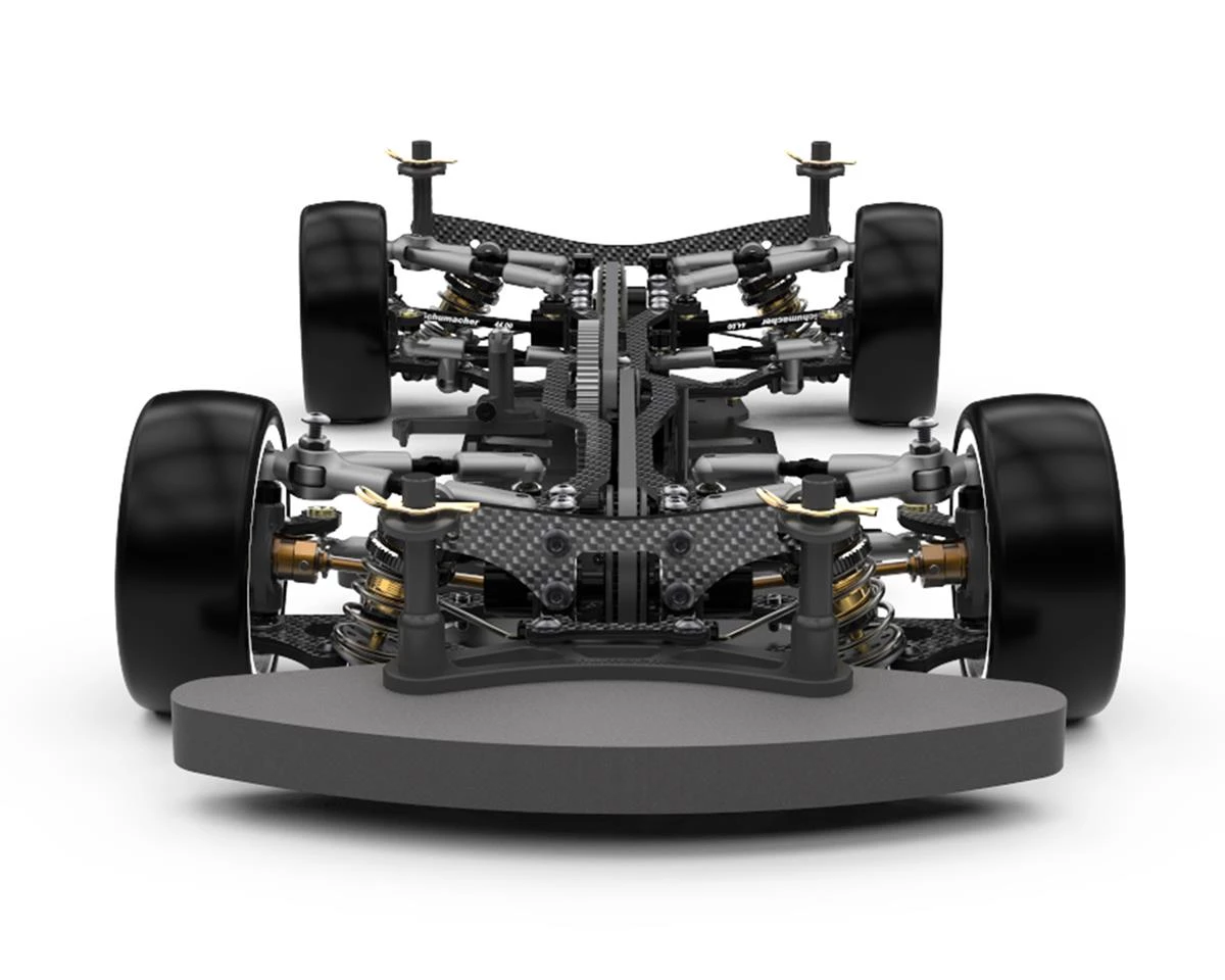 - Carbon fiber wishbones with pivot ball mounting inside and out. Improved flexibility, geometry, droop stability and chassis overhang at the rear. Ease and speed of build greatly improved.