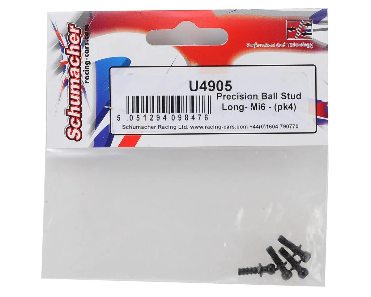 Schumacher Precision Ball Stud. Package includes four replacement Mi6 “long” ball studs.