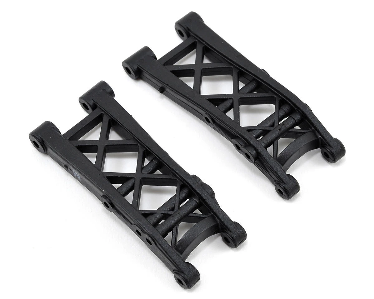 This is a replacement Schumacher Rear A-Arm Set, and is intended for use with the Schumacher CAT K1 1/10 scale 4WD buggy. These arms provide a medium amount of flex compared to the optional stiff rear a-arms (SCHU4166).