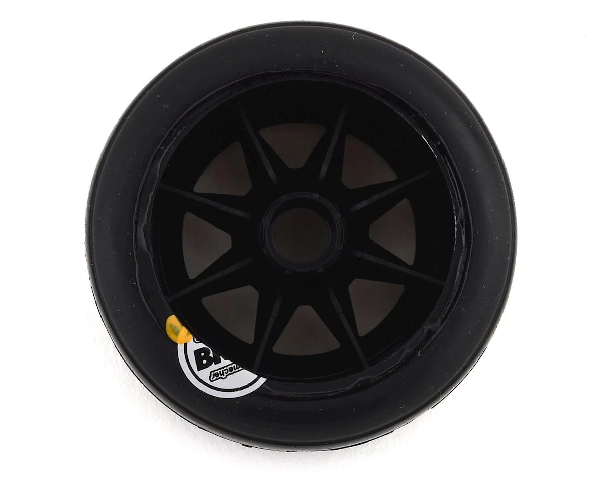 This is a set of Schumacher Shimizu F1 Front Pre-Glued V2 Tires. These V2 spec tires are pre-mounted on CRC wheels and are best suited to carpet racing applications.