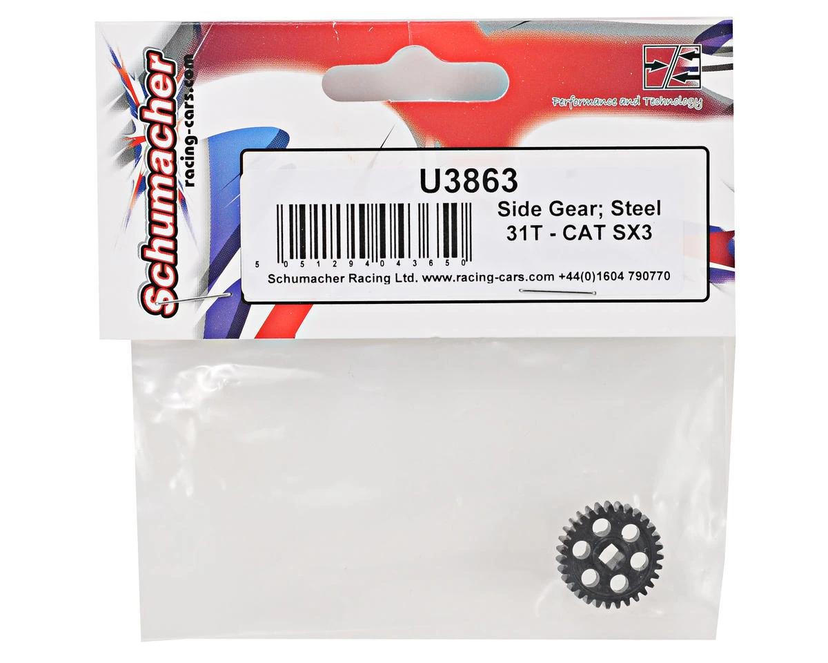 This is a Schumacher 31 Tooth Steel Side Gear, and is intended for use with the Schumacher Cat SX3.