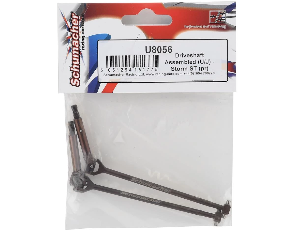 This is replacement set of two Schumacher Storm ST Assembled Driveshafts, intended for use with the Storm ST 1/10 2WD Stadium Truck Kit.