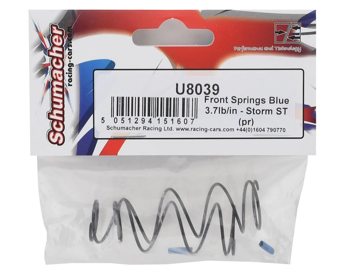 This is an optional set of two Schumacher Storm ST Front Blue 3.7lb/in Springs, intended for use with the Storm ST 1/10 2WD Stadium Truck Kit.