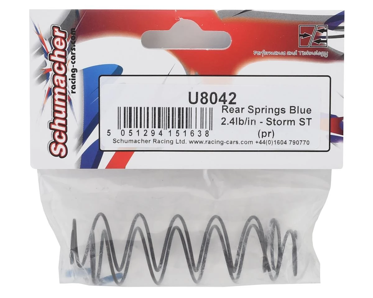 This is an optional set of two Schumacher Storm ST Rear Blue 2.4lb/in Springs, intended for use with the Storm ST 1/10 2WD Stadium Truck Kit.