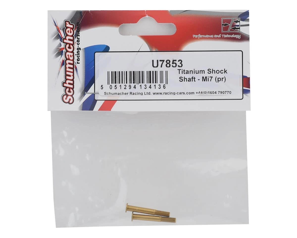 This is an optional set of two Schumacher Titanium Shock Shafts, intended for use with the Mi7 Pro 1/10 Carbon Fiber Electric On-Road Touring Car Kit.