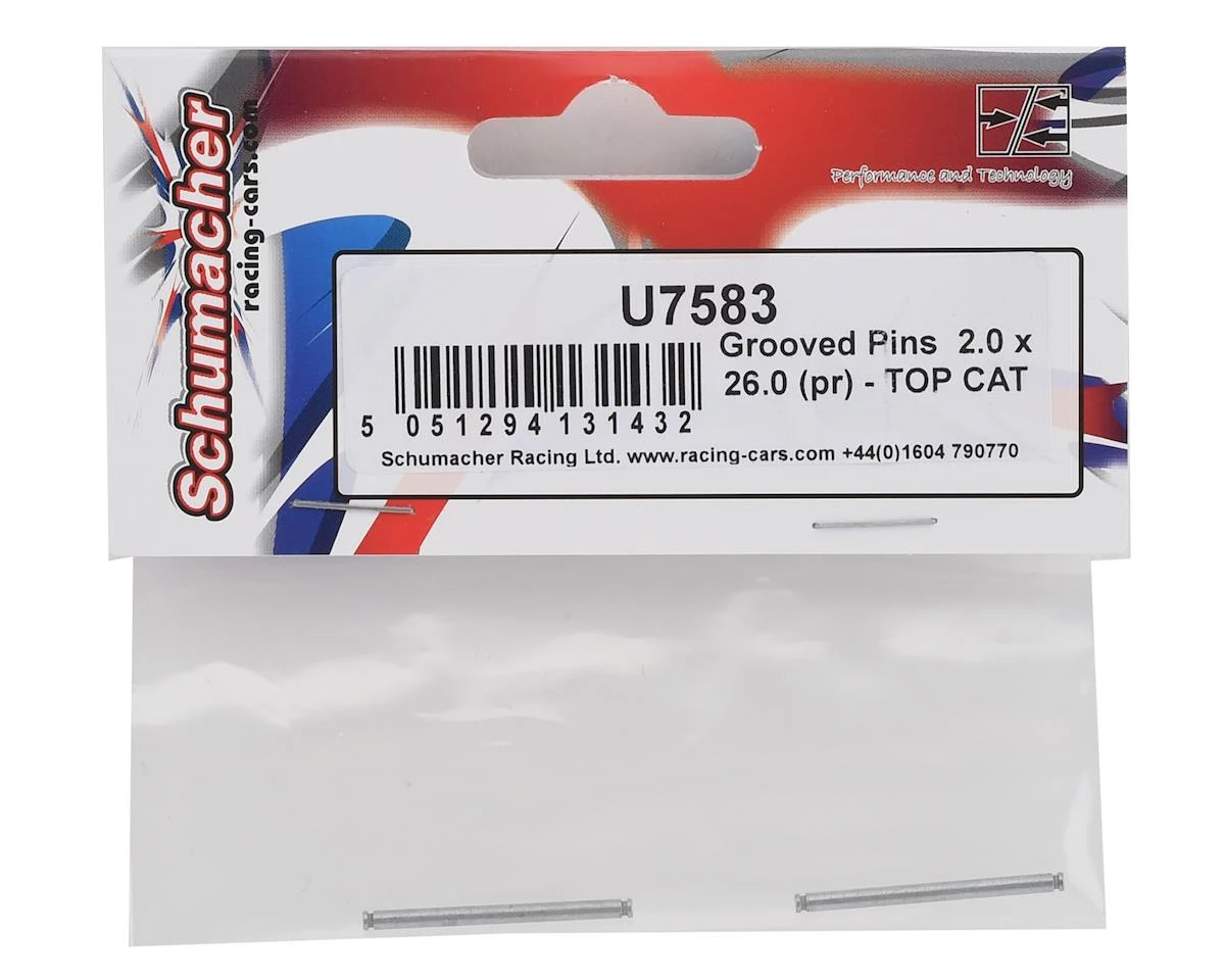 Schumacher TOP CAT 2x26mm Grooved Pins. Package includes two replacement hinge pins that are used in the front inner position.