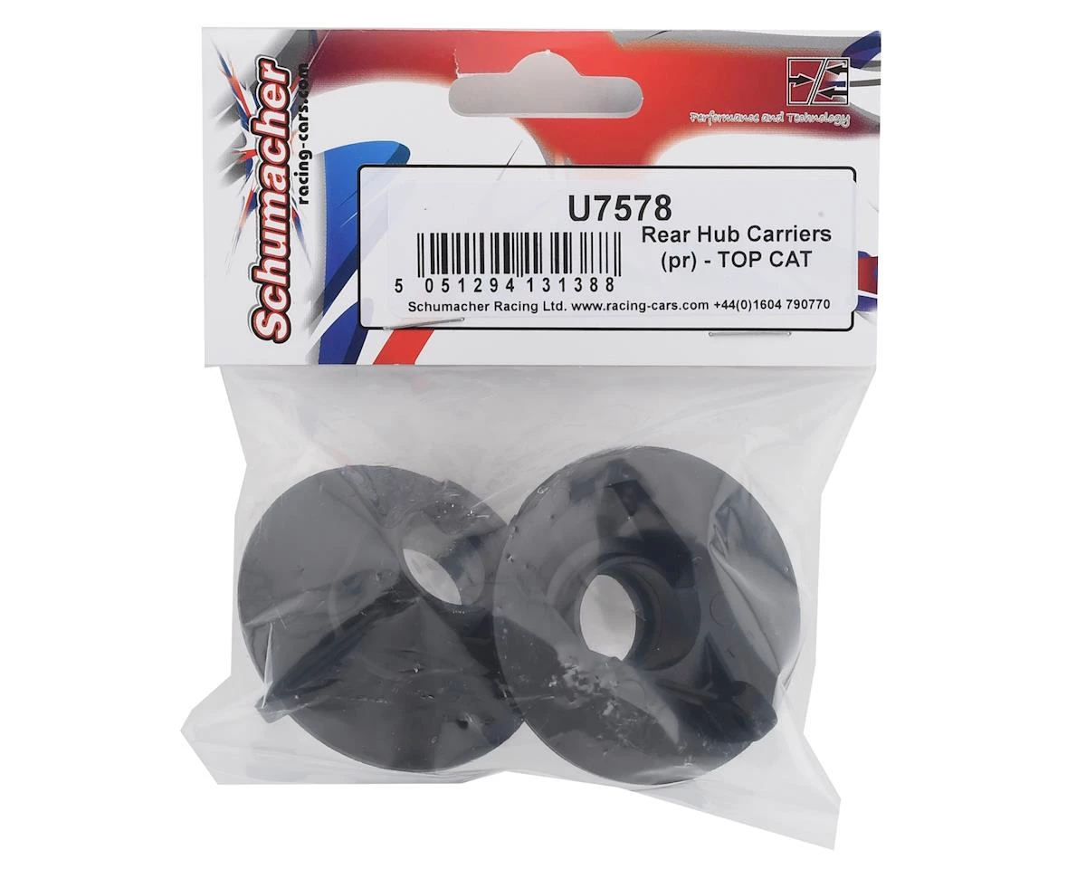 Schumacher TOP CAT Rear Hub Carriers. Package includes two replacement rear hub carriers.